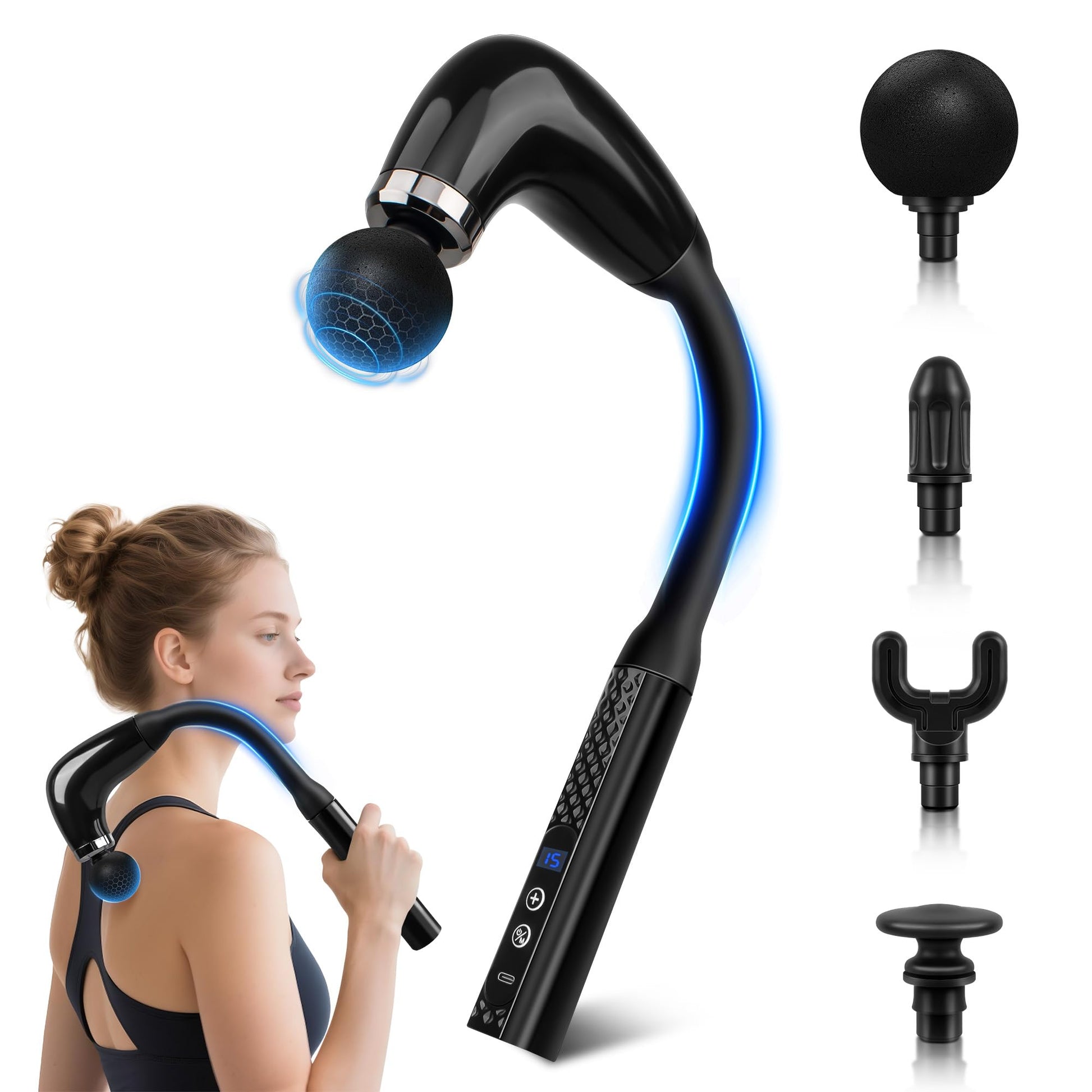 A: With its extended handle and ergonomic 120° arc design, it can easily reach your back, waist, neck, and shoulders—perfect as a self-massager for hard-to-reach areas.